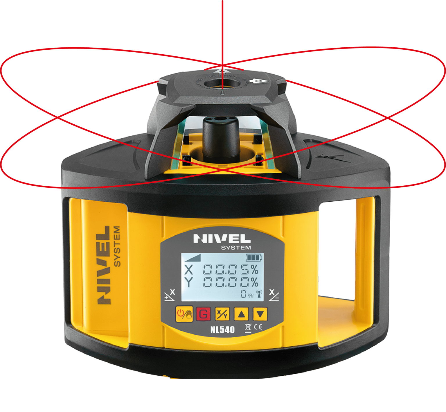 Rotating Laser Nivel System NL540 is a versatile and multi-purpose tool for carrying out the work inside the rooms (with a visible, red laser beam) and in open spaces (using the sensor). The instrument determines the horizontal, inclined, vertical (after rotating it 90 degrees) plane, thanks to plummet NL540 defines vertical or 90 degrees angles. NL540 is intended for general construction. Its strong side is durability, resistance to weather conditions and efficient batteries Li-ion, providing several hours of continuous operation in the field. The equipment is user-friendly with an intuitive interface and the possibility of remote operation via remote control.